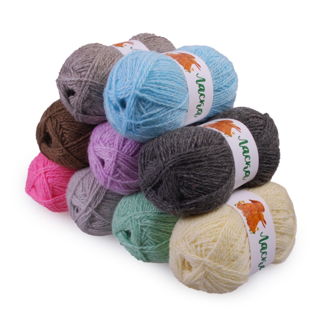 Пряжа "Ласка" Российского бренда ALPIRA. Шерсть с добавлением акрила средней толщины, мягкая, не колется. Умеренно скрученная, очень тёплая. Предназначена пряжа для вязания свитеров, жилетов, носков. Рекомендуемый диаметр спиц/крючка для пряжи - 3.0-3.5 мм
